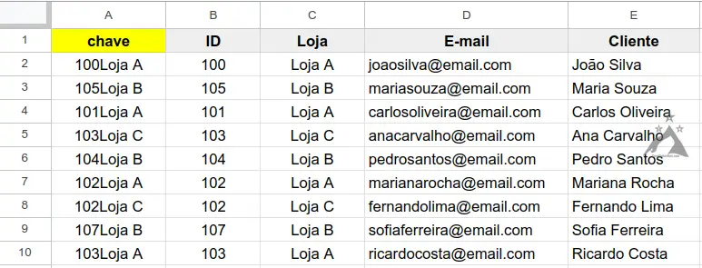 A primeira coisa que temos que fazer é a criação da chave com os dados das colunas de interesse. Em nosso exemplo combinaremos os valores do ID 102 e da Loja C, formando a chave 102Loja C.